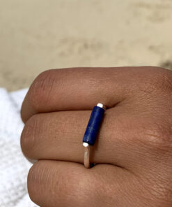 Bague en pierre naturelle de forme rectangulaire ou cylindrique.