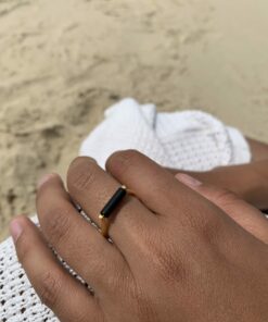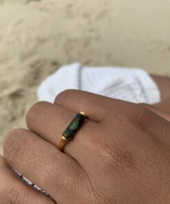 Bague en pierre naturelle de forme rectangulaire ou cylindrique.