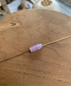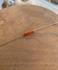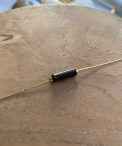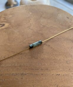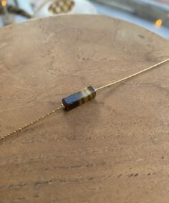 Bracelet en pierre naturelle de forme rectangulaire sur une chaîne en acier inoxydable et anti-allergique doré ou gris.