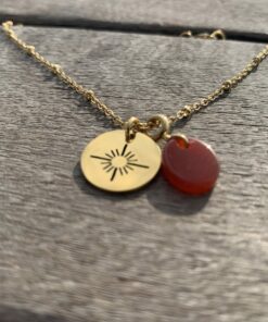 Chaque collier est fabriqué lors de la commande, les pierres sont choisies une à une pour respecter le design du bijou. Toutes les pierres d’un bijou étant unique, leurs couleurs peuvent varier d’une pierre à l’autre.